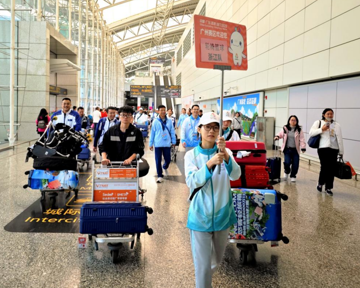 浙江队田径队26名队员和浙江轮椅篮球队23名队员一同抵达,对机场服务赞不绝口。浙江田径队工作人员叶菁表示:“机场服务很到位,无障碍通行和一对一服务让视听障碍运动员倍感暖心。”
