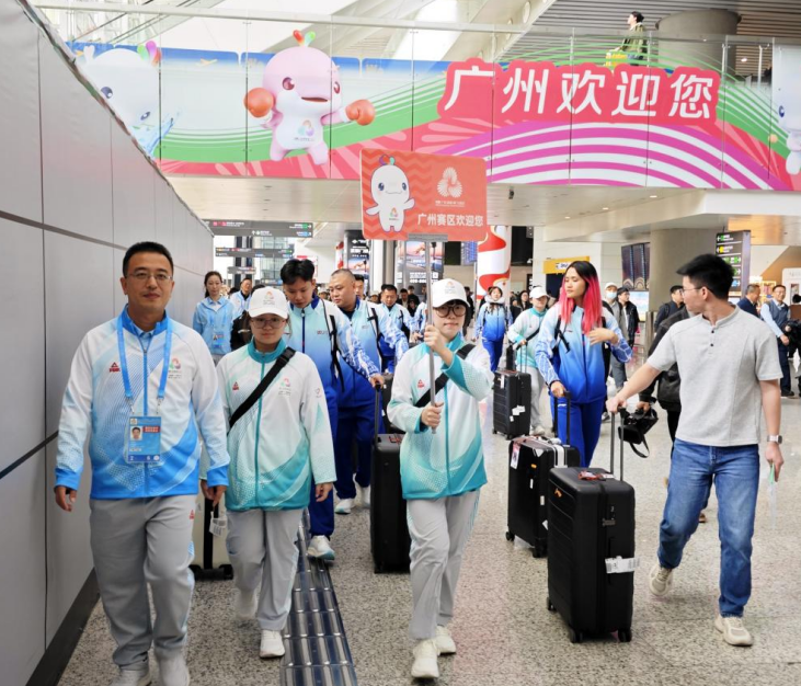当天,由花都区派出67名干部参与的白云机场抵离服务综合协调保障团队,高效保障了150个航班、超1000名参加轮椅篮球、坐式排球、盲人足球、田径等残特奥会项目的运动员顺利抵达广州赛区,其中包括近300名轮椅运动员。